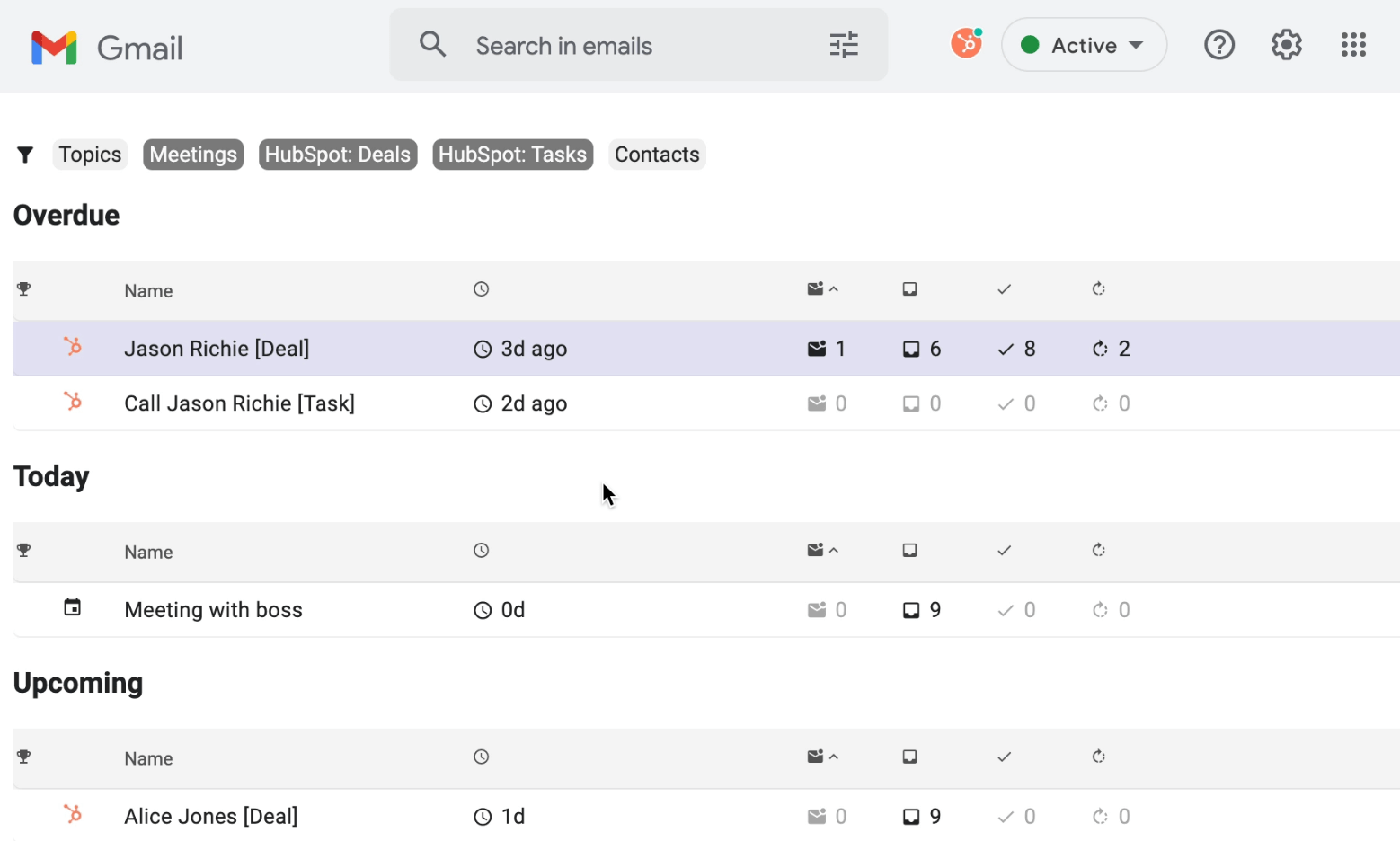 Still not a worry! HubSpot has a Gmail plugin. Let's try that... Well, it's perfectly good at sucking data into HubSpot, but it wasn't guiding me to emails that need my attention.