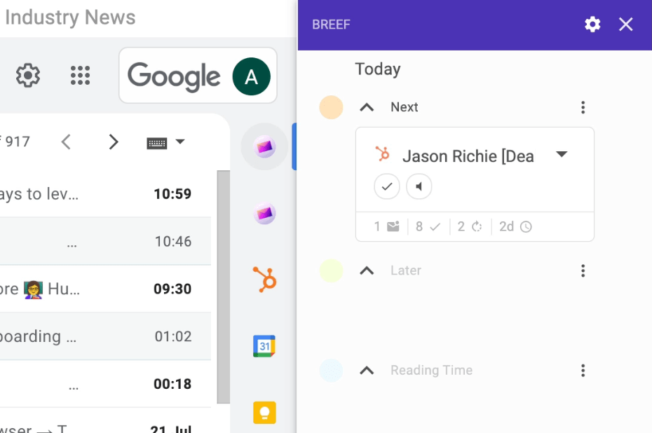 2. There's no duplication of work, no data silos. We spend too much time copying tasks between systems. Breef brings together all your deadlines, to make sure emails are answered in time.